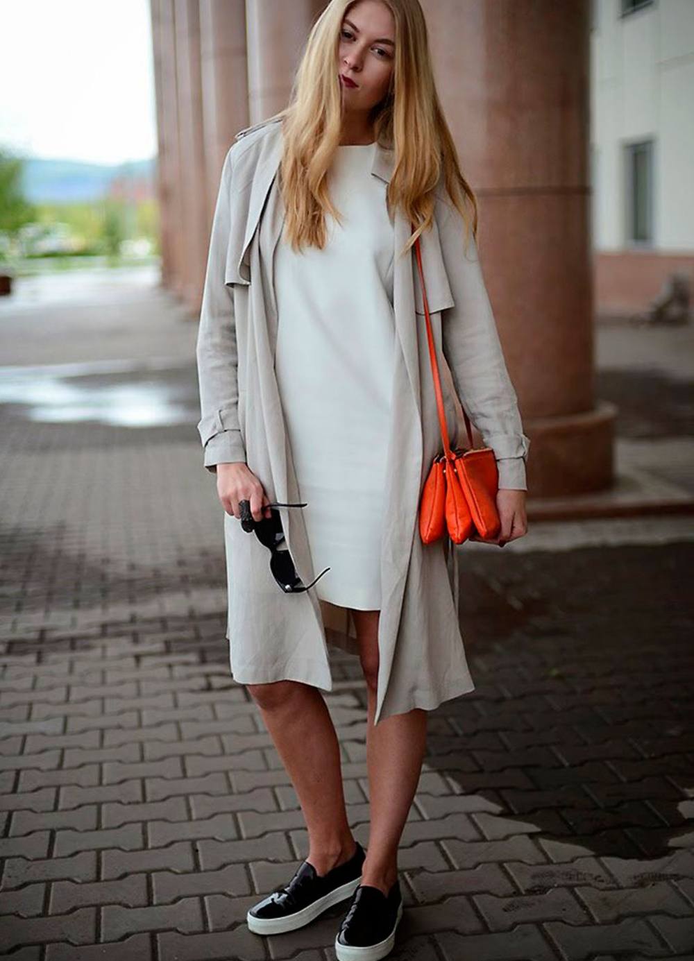 9. Джинсы скинни, серая маечка или фуболка и белые слипоны — тренд этого лета! Возьмите с собой сумку светлого оттенка любого размера и , конечно же, солнцезащитные очки, куда же без них?!