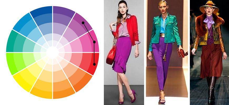 Имея перед собой цветовой круг, вы сможете безошибочно определять, подходит один цвет к другому или нет. Если перед вами две или три вещи, исполненные в цветах одного цветового сектора, но отличающиеся насыщенностью оттенка, их смело можно надевать вместе.