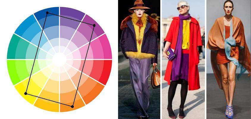Комплементарные цвета — оттенки расположены в противоположных друг от друга частей цветового круга. Согласно классической теории сочетания, один из цветов холодной гаммы гармонирует с противоположным тёплым цветом. К примеру, холодный фиолетовый прекрасно дополняет тёплый горчичный. Образ смотрится целостно и интересно.