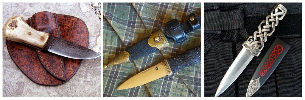 Когда мужчина приходил в гости, он обязан был снять оружие или переложить его на видное место, достав из «тайника». При ношении килта таких мест нет, кроме как в специальных кармашках или подвязках на гольфах. Лезвие было не видно, а рукоятка хорошо видна.