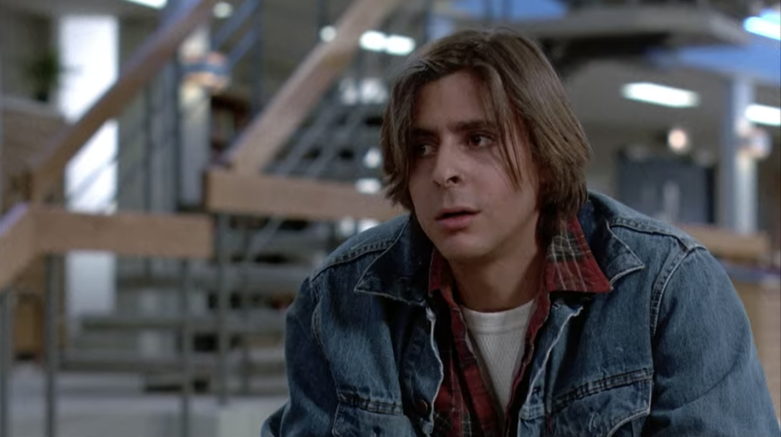 Задиристый хулиган, ставший прототипом Бендера из «Футурамы», облачен в миллион слоев, ведь несмотря на то, что он самый громкий, он же – самый скрытный. Мягкий лонгслив, рубашка в клетку (готовьтесь вооружиться ножницами – в фильме рукава обрезаны), джинсовка – и это не считая объемного пальто сверху. 35 лет назад такой образ, может, и вызывал отторжение, но сейчас кажется не более бунтарским, чем костюм с кроссовками. Разве что байкерские перчатки без пальцев мы бы советовали заменить закрытой моделью – все-таки пандемия.
