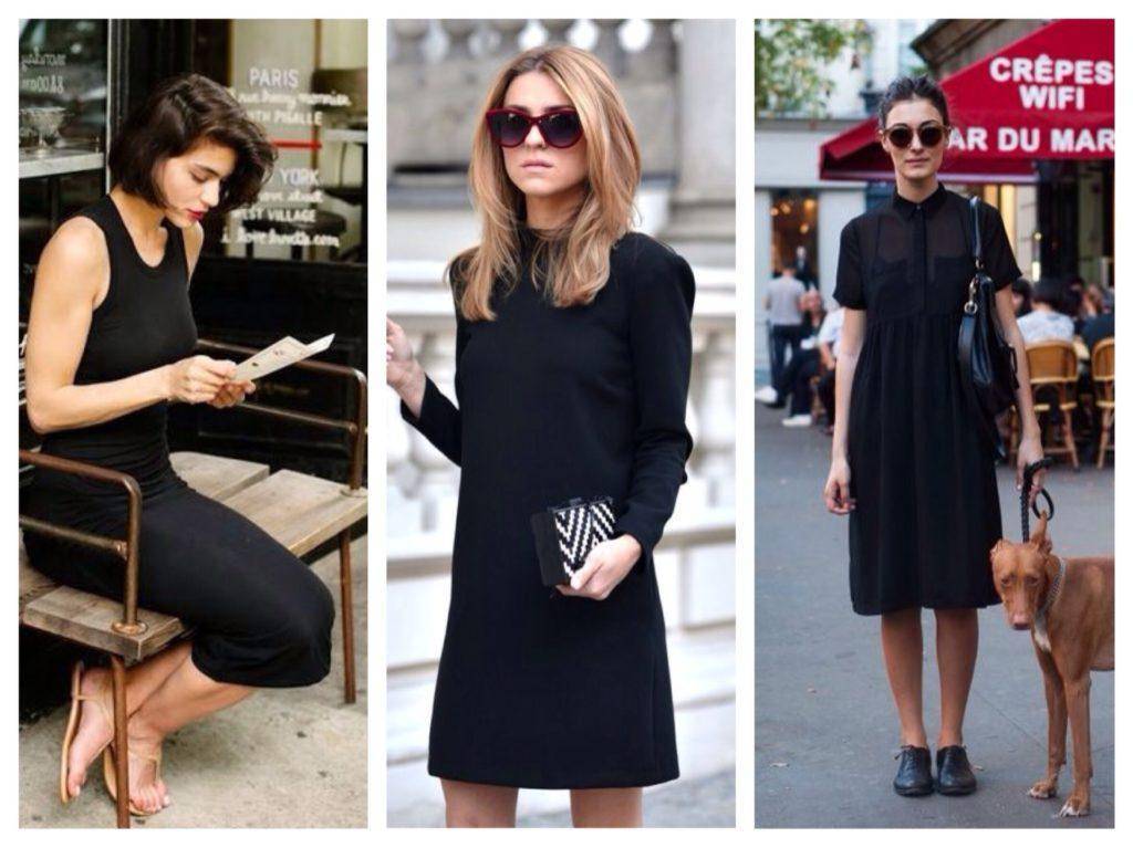 Парижанки также обожают платья-сорочки в бельевом стиле, маленькие черные вариации, свободные туники, модели в мелкий цветочный принт и классический фасон футляр.