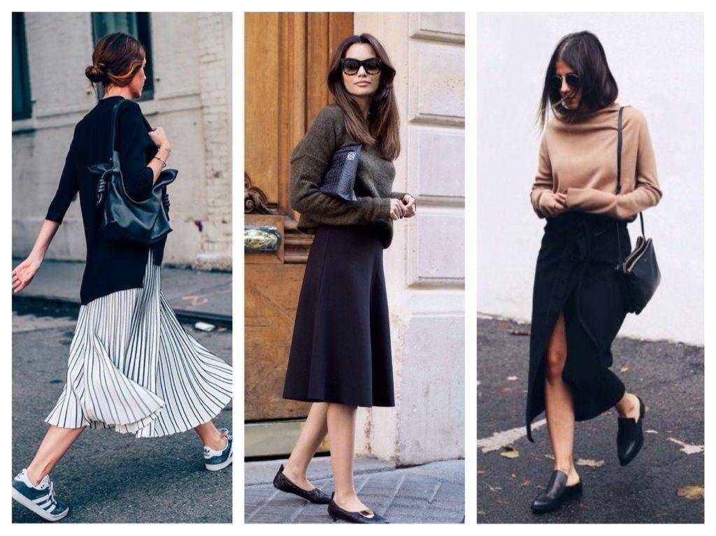 Образы с юбками и удобной обувью