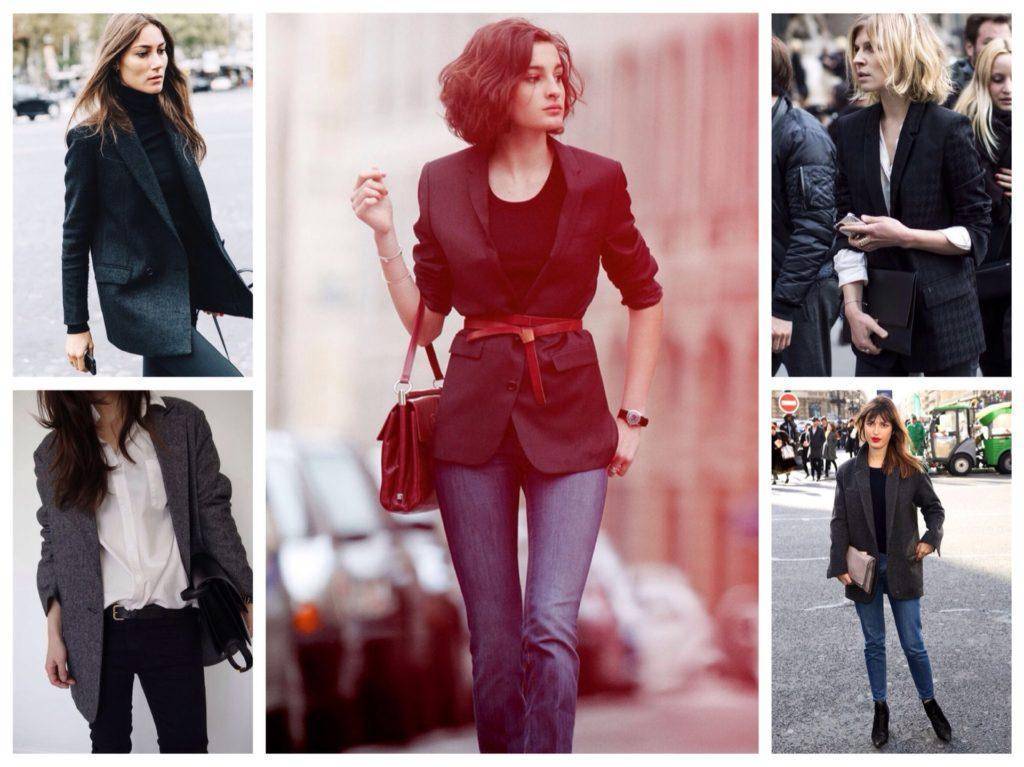 Пиджак – это, как ни странно, один из любимых женских элементов гардероба. Он надевается как под брюки, так и под юбку, платье. Француженки любят даже экспериментировать, надевая мужские модели – как ни странно, но при удачном ансамбле они могут выгодно подчеркнуть хрупкую фигуру.