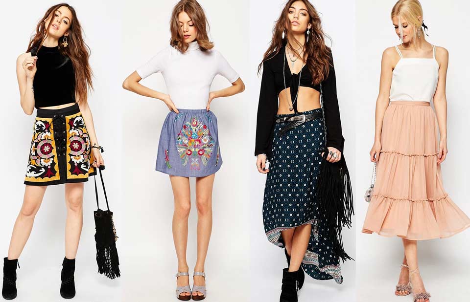 Популярная длина юбки – макси и миди, большинство моделей декорированы воланами. Дизайнеры советуют для создания необыкновенного образа, использовать варианты многоярусных юбок в сочетании с денимовым верхом.
