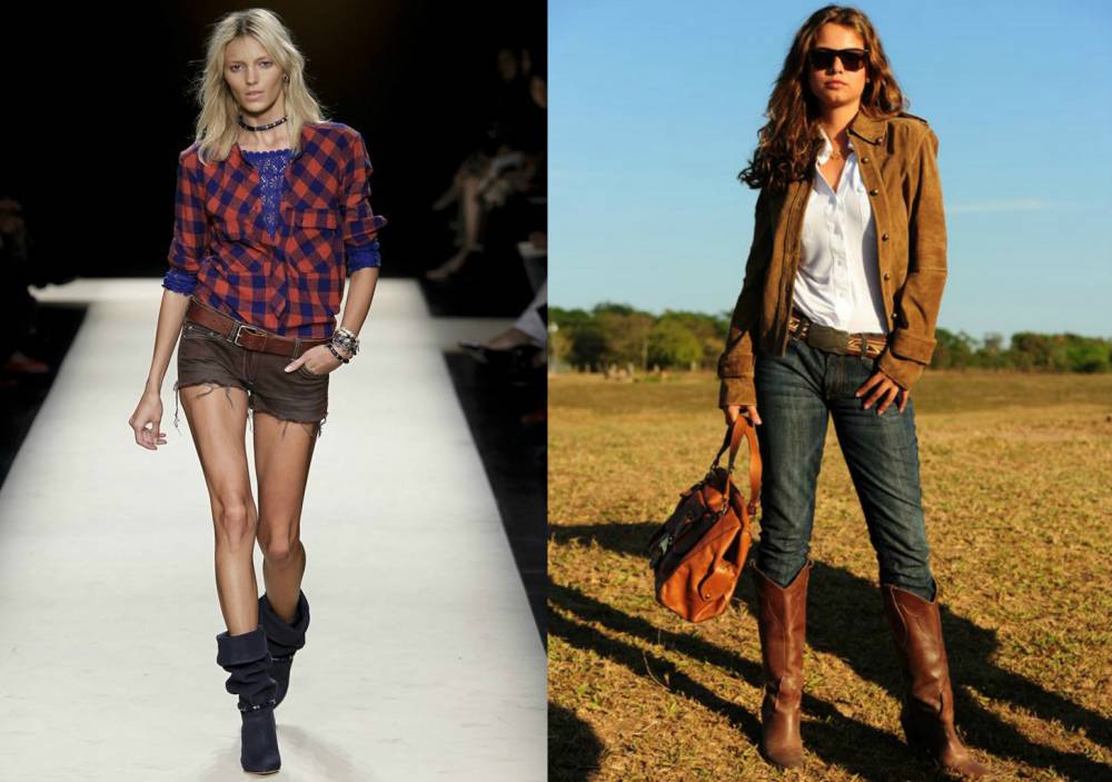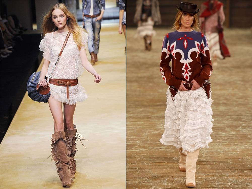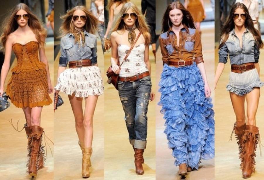 На мировые подиумы стильная одежда попала в далекие семидесятые годы прошедшего столетия. Наряды, напоминающие повседневный гардероб ковбоев, индейцев, золотоискателей, фермеров, характеризуются простыми формами, прямым кроем и функциональным назначением.