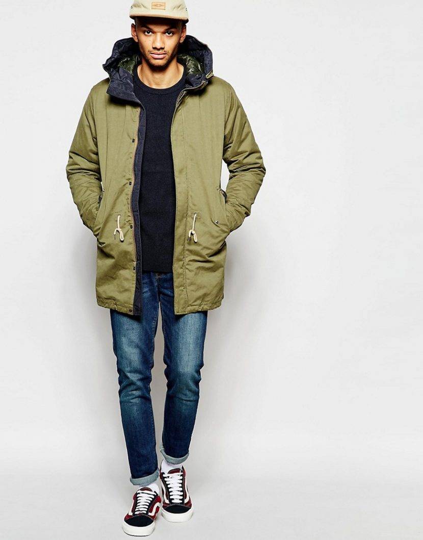 Они также подходят для людей, которые находятся в воздухе или на земле. Эта оливково-зеленая версия хорошо контрастирует с двойным денимом под ней. Также она может похвастаться необычно полным воротником, который возьмется за дело, когда холодные ветры зимы начнут дуть.