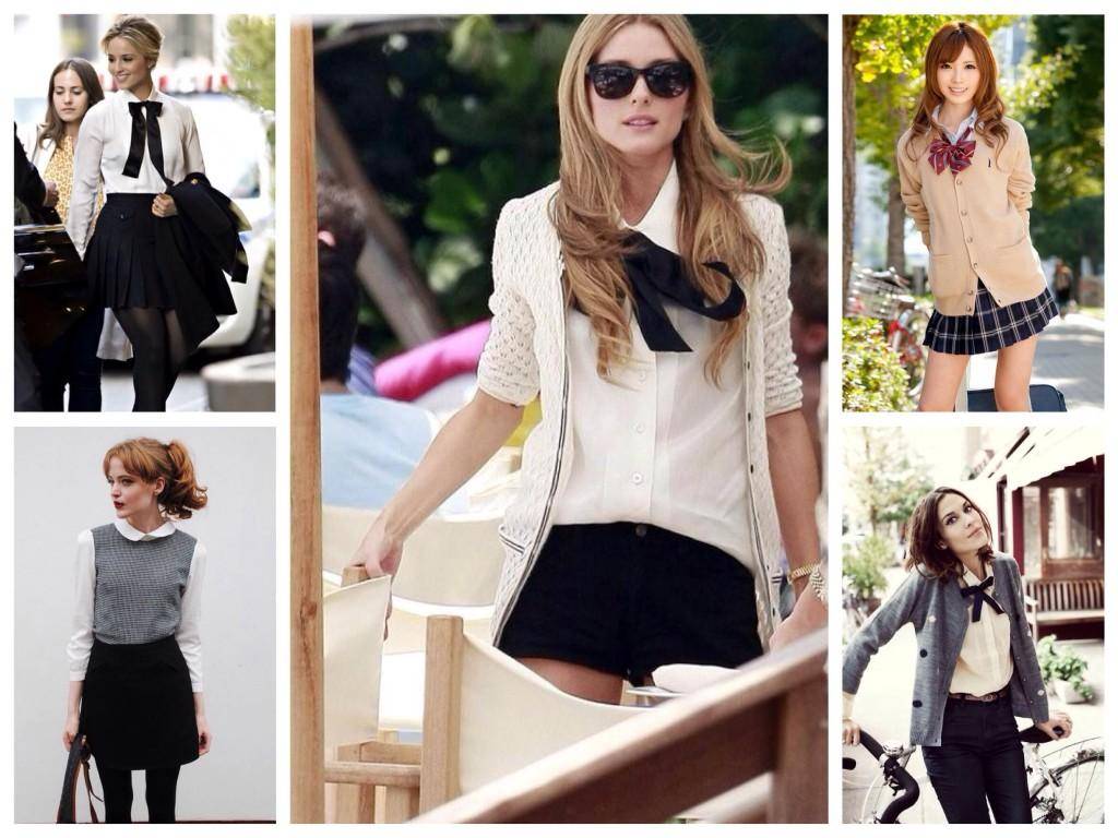 Что касается наших дней, давайте вспомним яркие образы Блэр Уолдорф и столь популярную в 2005 Gossip Girl, с легкой подачи которой и вернулась любовь к стилю Преппи. Миллионы поклонников сериала стали копировать экранные образы главной королевы Манхеттена. Так, всегда безупречно одетая Блэр не только сконцентрировала все взгляды на Преппи стиль, но и вернула в моду ободки, береты и яркое пальто. Давайте рассмотрим ключевые элементы одежды и попробуем составить свой Preppy outfits.