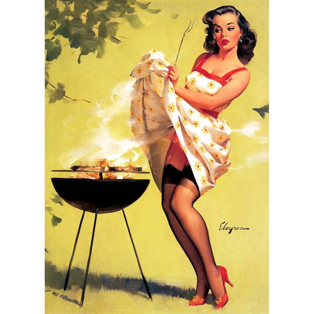 С началом Второй мировой войны стремление морально поддержать идущих на фронт мужчин, дать им уверенность в том, что кроме эфемерных идеалов государственности их ждут еще и самые прекрасные на свете женщины, спровоцировало повальное производство пин-ап-изображений: плакатов, открыток, обложек и журналов. Солдаты наносили изображения доведенных до абсолютного идеала девушек на фюзеляжи самолётов, хранили под слоями военной формы фотографии любимых героинь, а тиражи задорных и воодушевляющих своим видом красоток доходили до космических. И если в 1930-х женщины еще изображались томными и загадочными, то на протяжении 1940-х их образы трансформировались в жизнерадостные, пышущие энергией и как будто уверенностью в завтрашнем дне. И одной из главных женщин в этом деле оказалась актриса и танцовщица Бетти Грейбл, чьё фото в белом купальнике cтало культовым и наиболее тиражируемым.