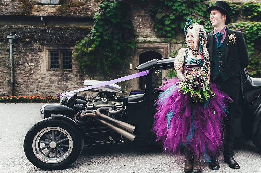 Невесте в стиле рок стоит дополнить образ дерзкими аксессуарами. К ним относят байкерские куртки, перчатки с шипами, заклепки и разнообразные металлические украшения. Сделать образ более грубым помогут стильные солнцезащитные очки.