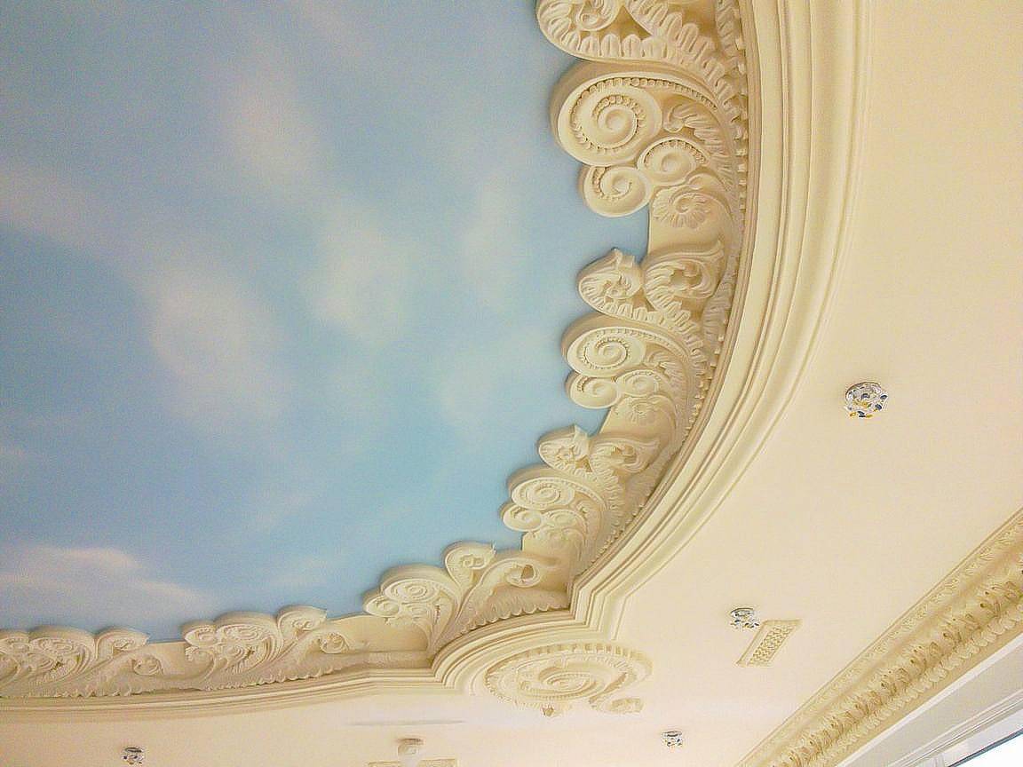 Для отделки стен в стиле рококо применяются тканевые обои или краска пастельных оттенков. Потолок, как правило, обрамляется оригинальной лепниной и позолотой. Угловые стыки обязательно сглаживаются с помощью лепнины. В качестве альтернативы фрескам можно использовать картины или фотообои.