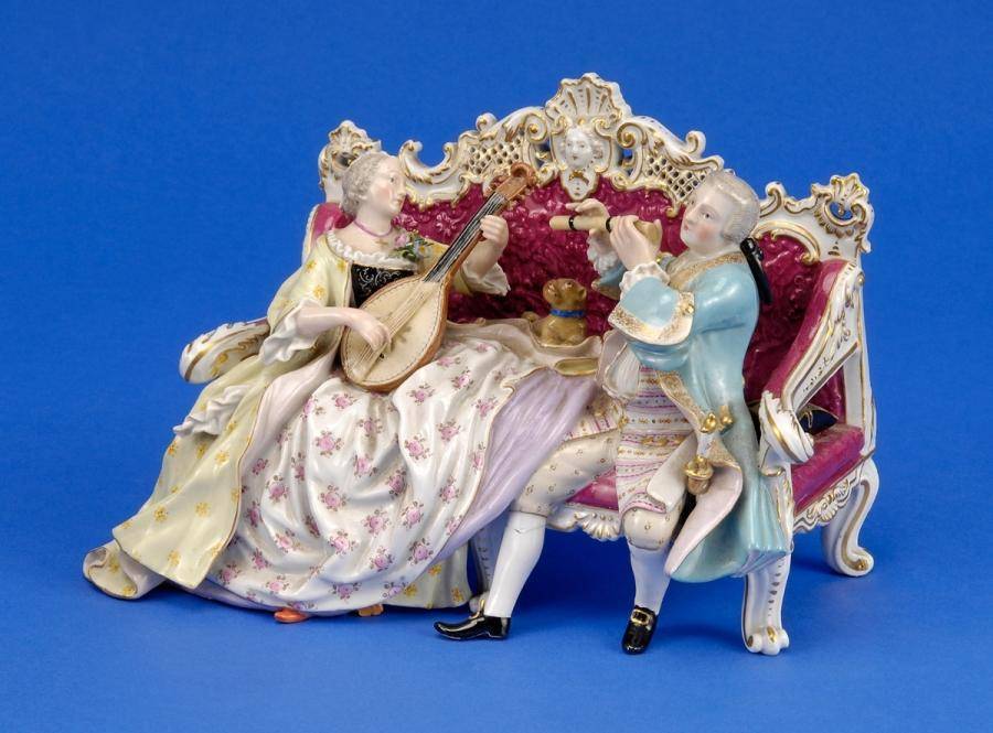В XVIII столетии был разработан изысканный фарфор в крупной компании в Саксонии, поэтому в убранстве широко распространена посуда из этого материала. Стиль проистекал от барокко и впитал в себя многие его особенности, однако большего расцвета получил в эпоху Возрождения. Но в отличие от своего предшественника рококо присущ комфорт, нежность и невероятная лёгкость.