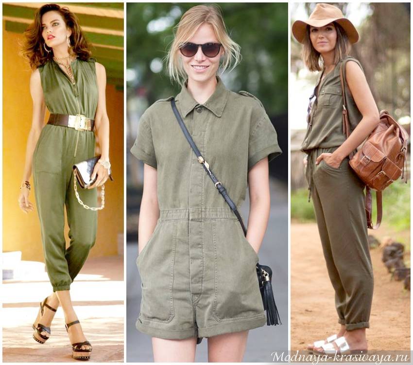 Такая одежда в стиле сафари может изготавливаться с длинными штанинами. Подобный комбинезон станет отличным решением для межсезонья. По сути, он является самостоятельным и невероятно стильным предметом гардероба. Сочетать его можно практически со всеми моделями обуви. Уместны будут как удобные кроссовки, так и элегантные босоножки.