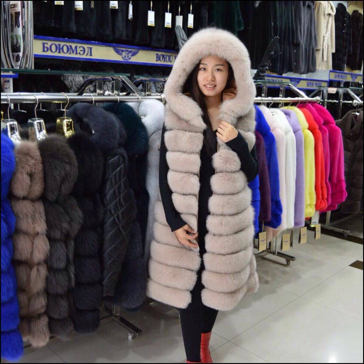 - Шуба из песца со всеми пристегнутыми элементами. Этот вариант подходит для прогулок с семьей в морозы или для посещения театра, ресторана. Длина такой модели доходит обычно до линии колен или бедер;