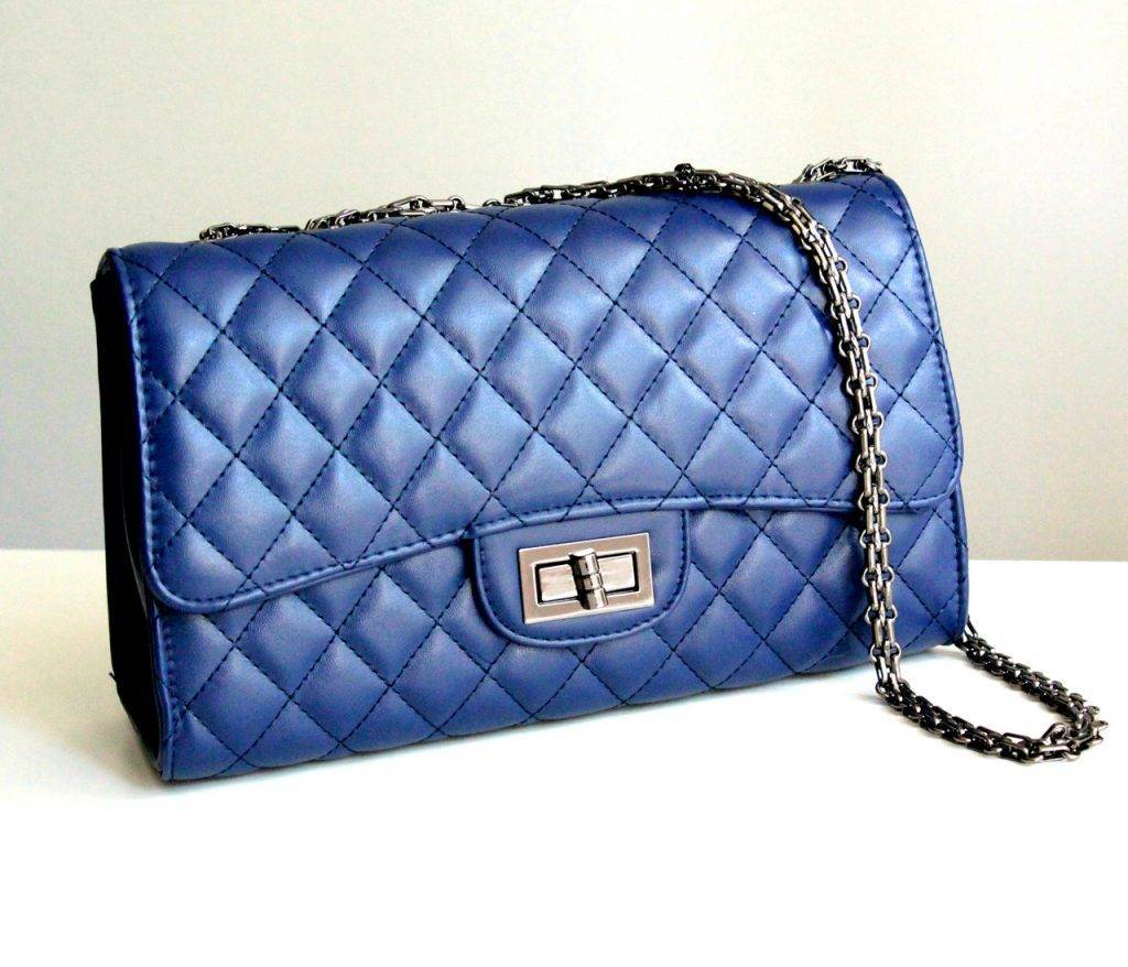 - Chanel 2.55 – производится с 1955 года, свое название получила по дате выхода в свет. Сумочка стеганая – это добавляет ей элегантности и изыска. Замок прямоугольный, легко открывается поворотом в сторону, имеет логотип Chanel. Подкладка сумки выполнена в бордовом цвете из натурального материала. Снаружи на задней стенке изделия есть отделение на замке. Производится модель в нескольких цветах, но изначально использовался лишь черный. Классическая сумка Шанель стоит от 300 до 590 тысяч рублей.