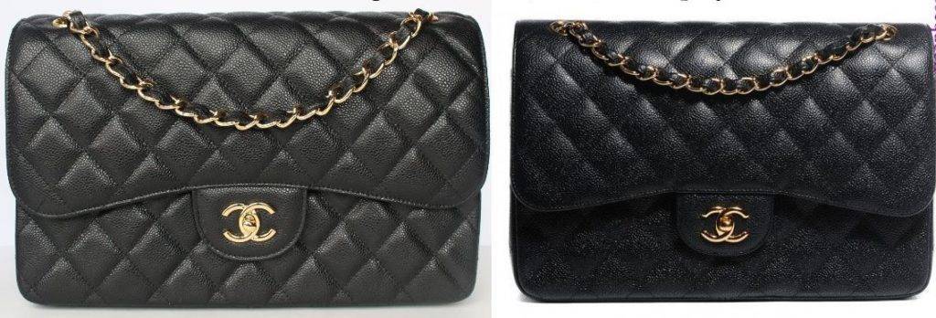 - Качество материалов и швов. Как правило, по сравнению с подделкой текстура материала настоящей сумки Chanel менее блестящая, а скорее матовая. Новая сумка обладает благородным ароматом натуральной кожи, резкий химический запах – это признак подделки. Кожа плотная и очень мягкая на ощупь. Также отличить оригинал сумки Chanel от подделки можно по подкладке – у подлинника она плотно прилегает к кожаным стенкам. Ромбовидные швы на оригинальной Chanel 2.55 образуют целостный идеальный рисунок по всей поверхности кожи. Один из простых способов отличить подделку «Шанель» – осмотреть внешний карман и закрыть переднюю крышку. Асимметрия рисунка – верный способ определить копию. Плотность стежков очень высокая – более 10 на дюйм (2,54 см). Цвет нитей всегда подобран в тон к остальным частям сумки, контрастные швы и фурнитура помогут выявить фальшивку. Вся фурнитура, в том числе бегунок на молнии – фирменная, высокой прочности. Брелок молнии часто выполнен из кожи. Ручка в виде цепного ремешка довольно тяжелая, оттенок цепочки идеально совпадает с цветом остальной фурнитуры. Оригинал «Шанель» можно отличить по плотности ремешка – это свернутый цельный отрезок кожи.