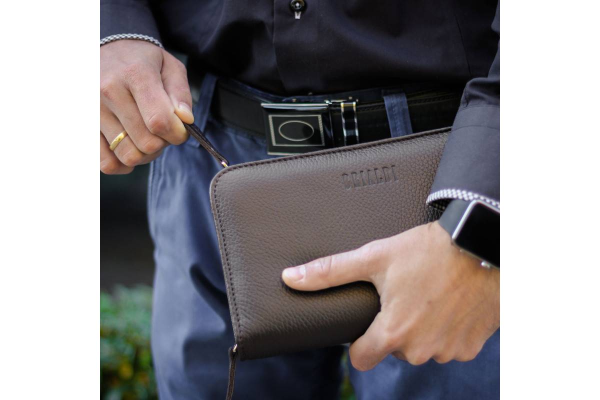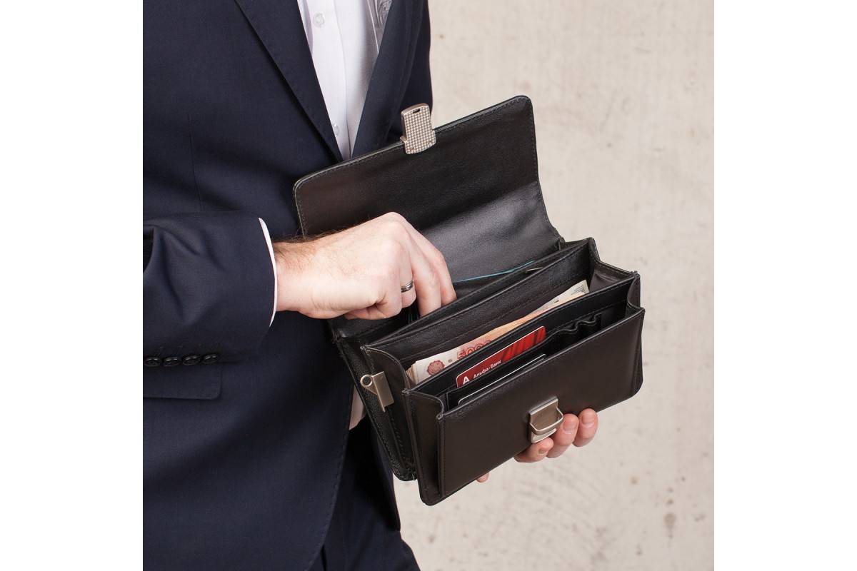 Несмотря на компактность, в мужском мире пользуется большой популярностью. Есть несколько вариантов ее носки: в руках или через плечо на длинном ремешке. Такая сумка имеет много отделов. В нее помещаются ключи, визитница, банковские карты, деньги, смартфон, блокнот и кое-какие канцелярские принадлежности.