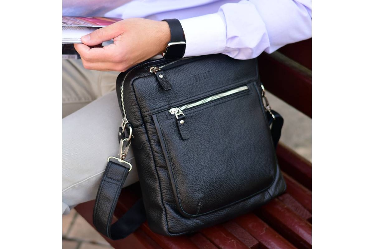 Портфель, «почтальонка» или даже поясная сумка будут выглядеть эффектнее, если изготовляются из натуральной кожи.