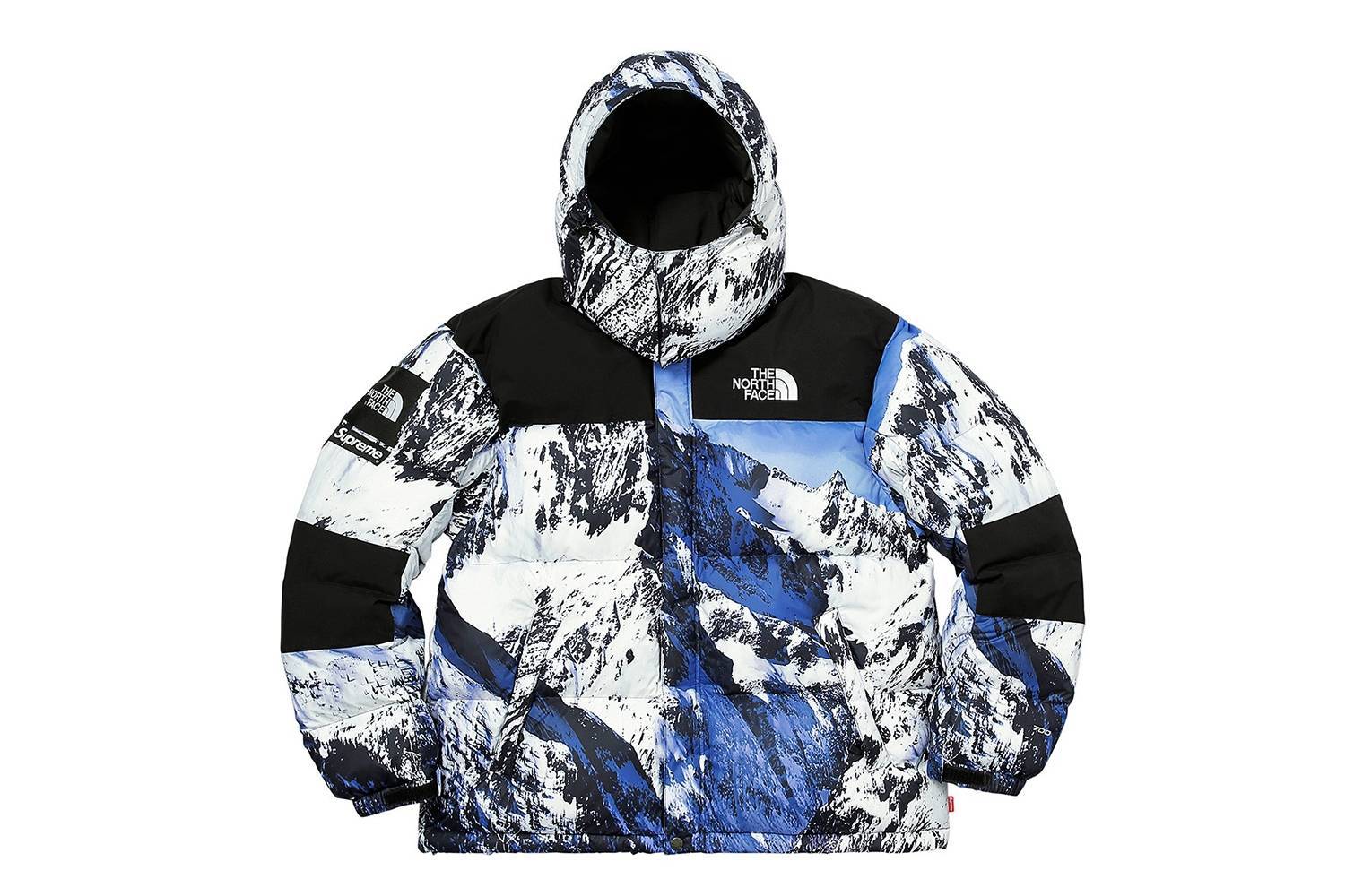 Второй дроп был солиднее первого — и экономически выгоднее, особенно для реселлеров. В рамках второго дропа Fall/Winter 2017 вышла одежда с принтом Snowy Mountain, по стилю напоминающим предыдущие принты «Map» и «Night/Day». Изображение гор покрыло футболки, свитшоты, бейсболки, рюкзак Expedition, одеяло Nuptse Blanket, парку Mountain Parka и куртку Baltoro с гусиным пухом с f.p. 700 — первой в истории Supreme x The North Face. Куртки Baltoro, ставшие одним из самых успешных дропов в истории, массово раскупали, и они быстро затмили кожаные Nuptse, вышедшие незадолго до этого. Еще одним ключевым моментом было совместное бокс-лого Supreme x The North Face — наполовину красный, наполовину желтый принт с названиями обоих брендов, который украсил футболки и свитшоты. И хотя до популярности традиционного бокс-лого — или даже, если уж на то пошло, совместных бокс-лого — ему было далеко, это стало приятным дополнением к коллекции.