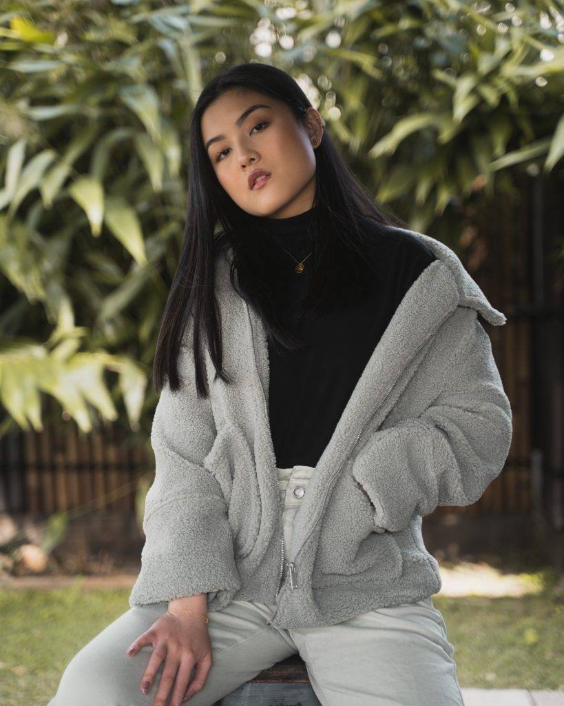 Для фигуры типа прямоугольник подходит свитер стиля оверсайз.