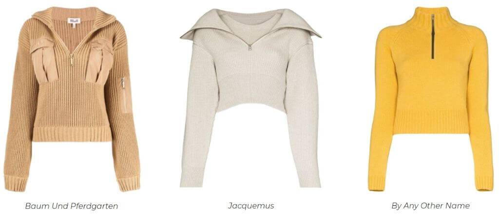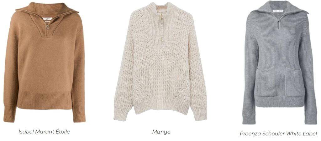 Если создаете наряд в спортивном стиле, то обратите внимание на подходящий свитер с застежкой или молнией на воротнике. Такие модели отлично подойдут для межсезонного образа