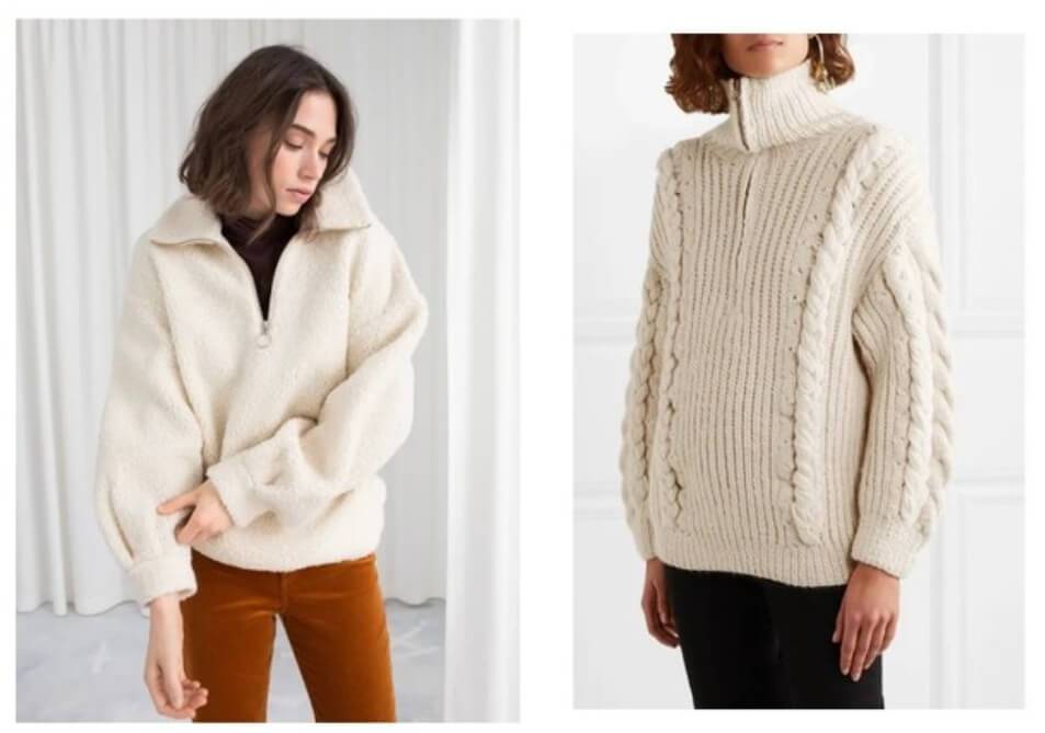 Особенное внимание обратите на ворот, так как в отличие от рук — шея более подвержена воздействию холода. Лучше всего выбрать свитер с горлом «стойка»
