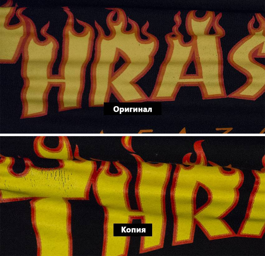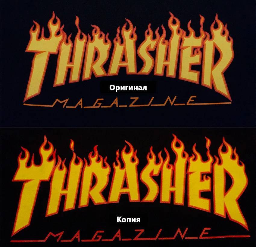 Обратите внимание, что оригинальный Thrasher не делается в Китае. Бирка в боковом шве отсутствует, поскольку нет и самого шва