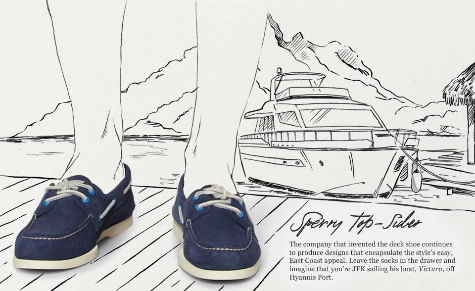 Основное правило, которое необходимо знать и придерживаться всем, у кого в гардеробе имеется хотя бы одна пара топсайдеров: ни в коем случае не надевать их с носками. Топсайдеры и носки — вещи абсолютно несовместимые с момента появления первых, и это не изменится никогда.