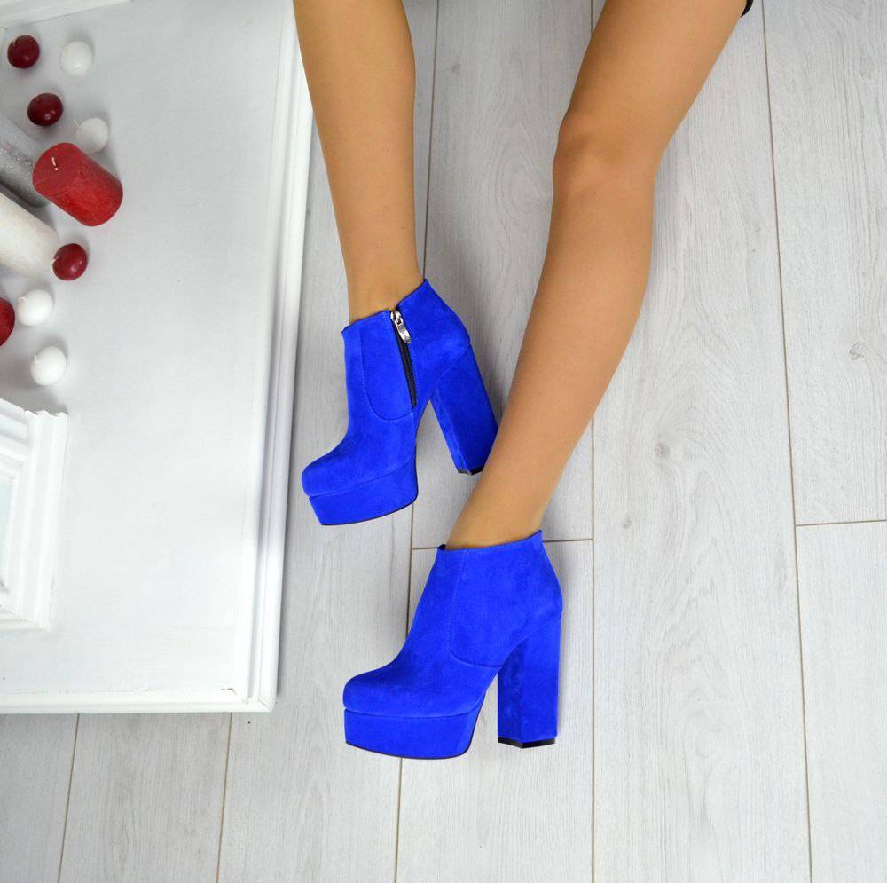 Темные и холодные синие цвета сделают образ более изысканным. Такие полусапожки сочетаются с одеждой фиолетового или оранжевого цветов. Они подойдут к джинсам и свитерам.