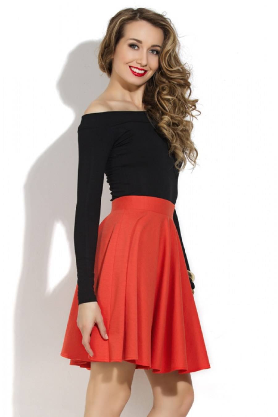 Для высоких худеньких девушек юбка клёш может быть любой длины и цвета. Складочки создадут плавные формы, придадут женственность.