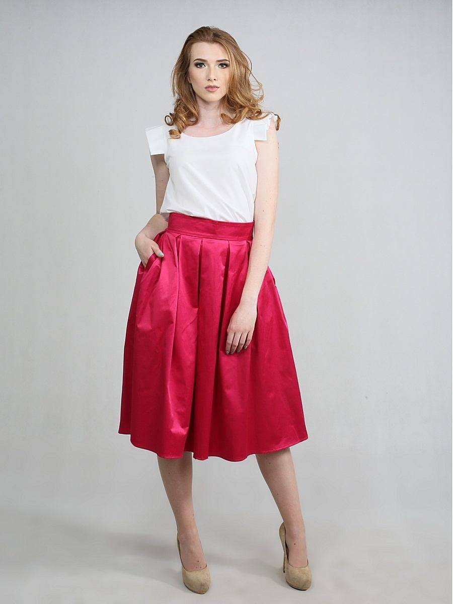 Еще одна разновидность тканей, из которых шьют модные летние модели, – это атлас и шелк. Легкие, блестящие юбки выглядят весьма дорого, торжественно. На основе такой модели можно создать эффектный образ, в котором не стыдно появиться как на вечеринке, так и в театре. Атласная юбка-солнце сочетается с однотонным верхом и изящными босоножками.