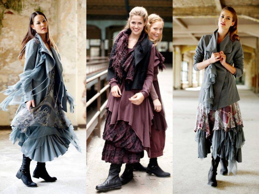 Такие приемы кроя всегда присутствовали в этом стиле. Многослойность делает модели универсальными, но в то же время женственными. Они подойдут для шумного мегаполиса, для прогулок на природе.