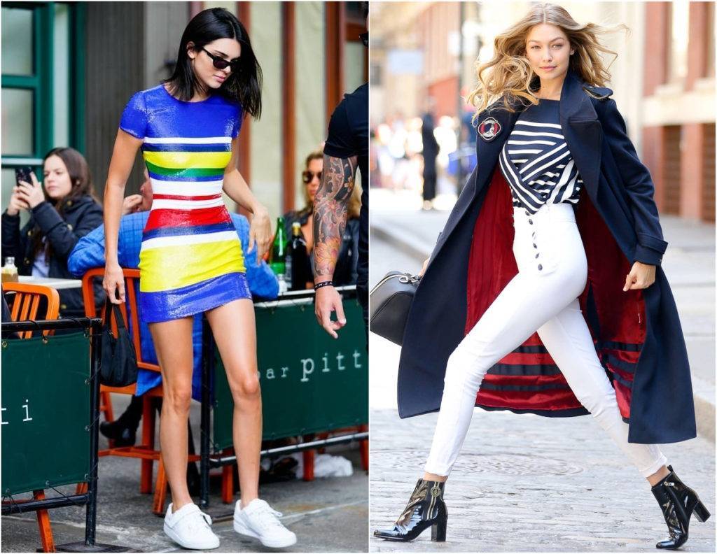 Для своих повседневных выходов модели и актрисы предпочитают одевать тельняшку с шортами или джинсами. Среди них модели Кейт Мосс и Миранда Керр, актрисы Лив Тайлер и Сара Джессика Паркер и другие. Современная интерпретация одежды в полоску нашла свое отражение в модных образах королев Инстаграма Кендалл Дженнер и Джиджи Хадид.