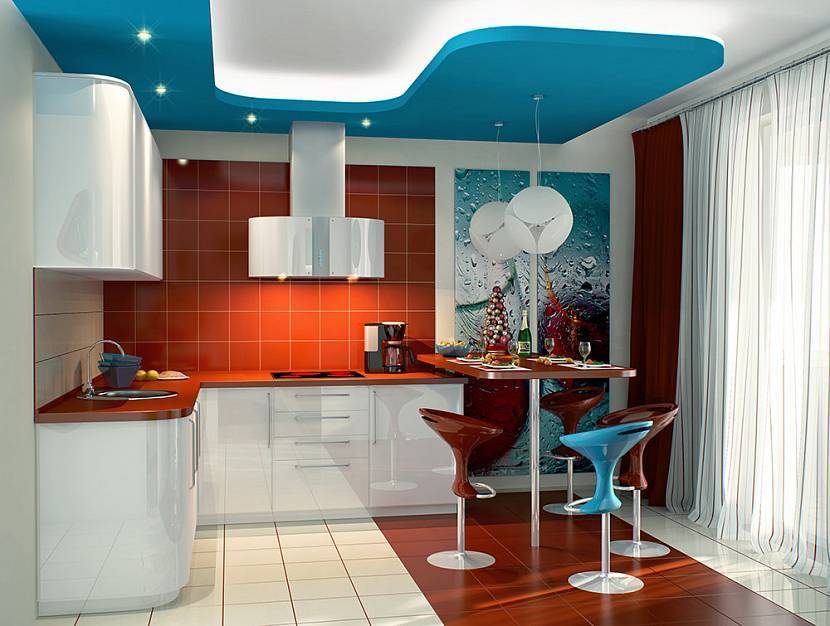 Пространство визуально увеличивает белый потолок со встроенным светодиодным освещением.Источник vivbo.ru