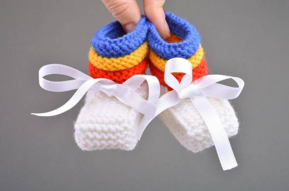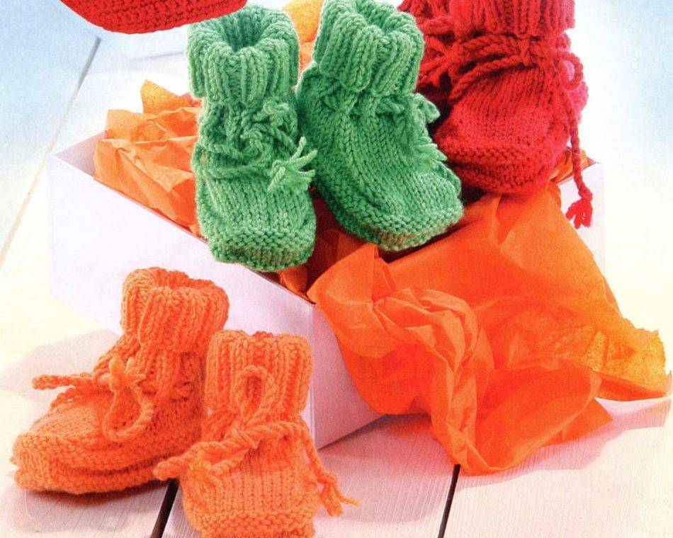 Рассмотрим подробно, как вязать детские пинетки на 2 спицах.