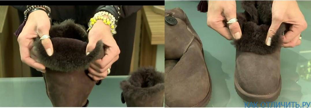 Следует помнить, что в оригинальных UGG Australia верх и внутренний мех представляют одно целое. Если попытаться разделить их, потянув с двух сторон, то ничего не выйдет. В подделках это вполне могут быть два полотна, соединенные между собой. В них наш фокус вполне может получиться.