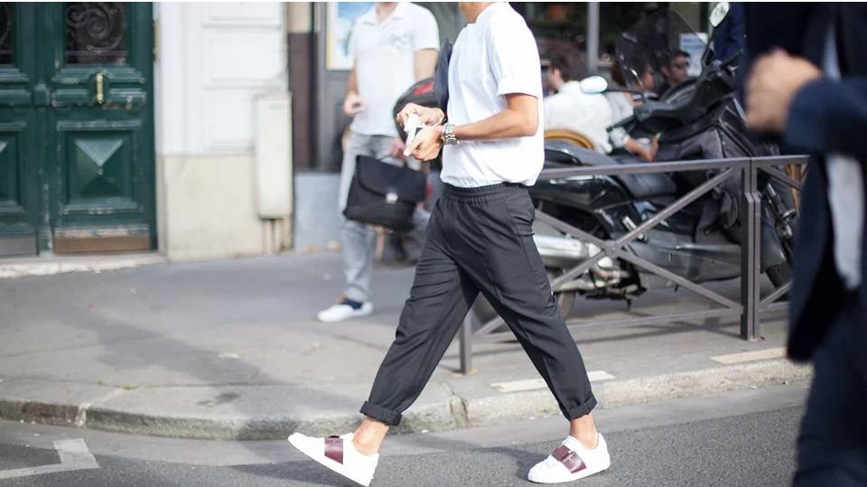 Включение элемента уличной одежды в твой образ может быть более тонким делом, особенно учитывая преобладание высококлассных штанов, которые в настоящее время предлагаются от брендов по всему миру. На изображении выше пара штанов с эластичным поясом и свернутыми манжетами очень удачно заменила пару брюк чинос.