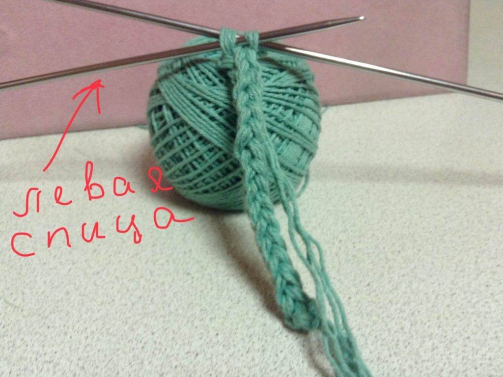 - Вначале наберите 16 п. и вяжите 20 см основной вязкой.