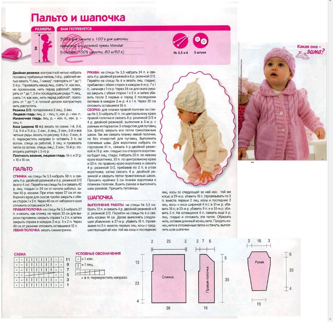 Пальто и шапка для маленькой девочки с описанием, схемой и выкройкой.