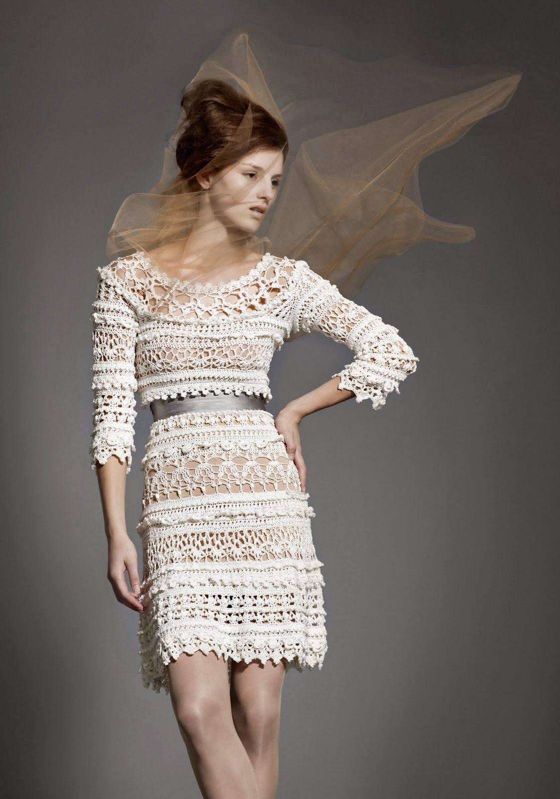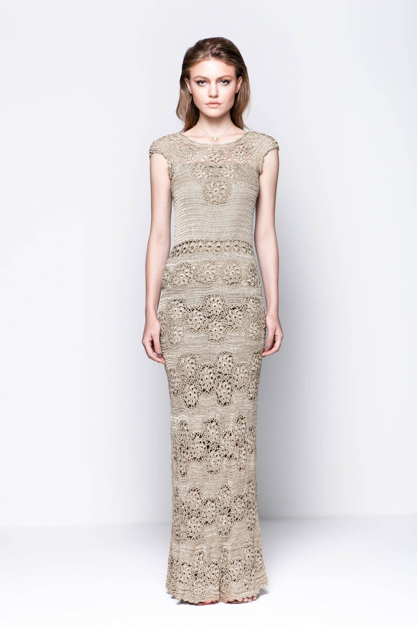 Затронув тему о вязаных платьях нельзя не отметить известного дизайнера и создательницу собственных уникальных узоров крючком Ванессу Монторо. Ее наряды сочетают в себе различные мотивы и узоры, объемное и многоярусное вязание, использование надвязываемых рядов, плавный переход от одного узора к другому. Платья от Ванессы Монторо – это эталон изысканности и женственности.