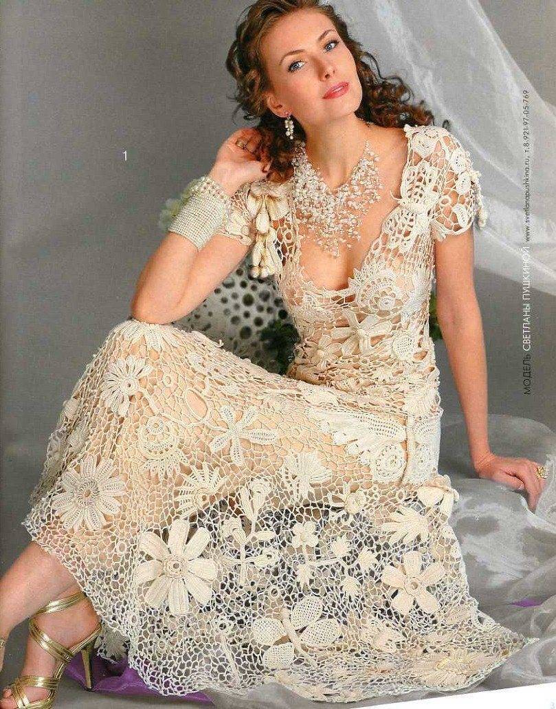Вечерние вязаные платья 2021 крючком