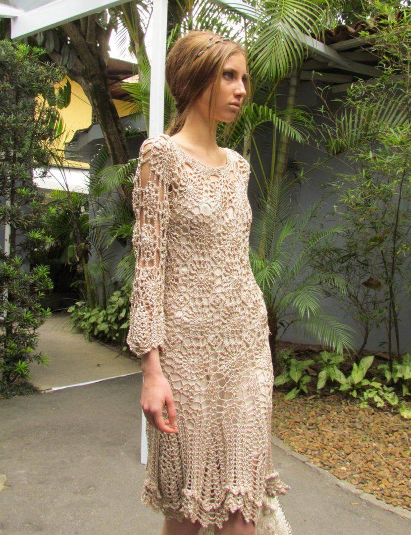 Затронув тему о вязаных платьях нельзя не отметить известного дизайнера и создательницу собственных уникальных узоров крючком Ванессу Монторо. Ее наряды сочетают в себе различные мотивы и узоры, объемное и многоярусное вязание, использование надвязываемых рядов, плавный переход от одного узора к другому. Платья от Ванессы Монторо – это эталон изысканности и женственности.