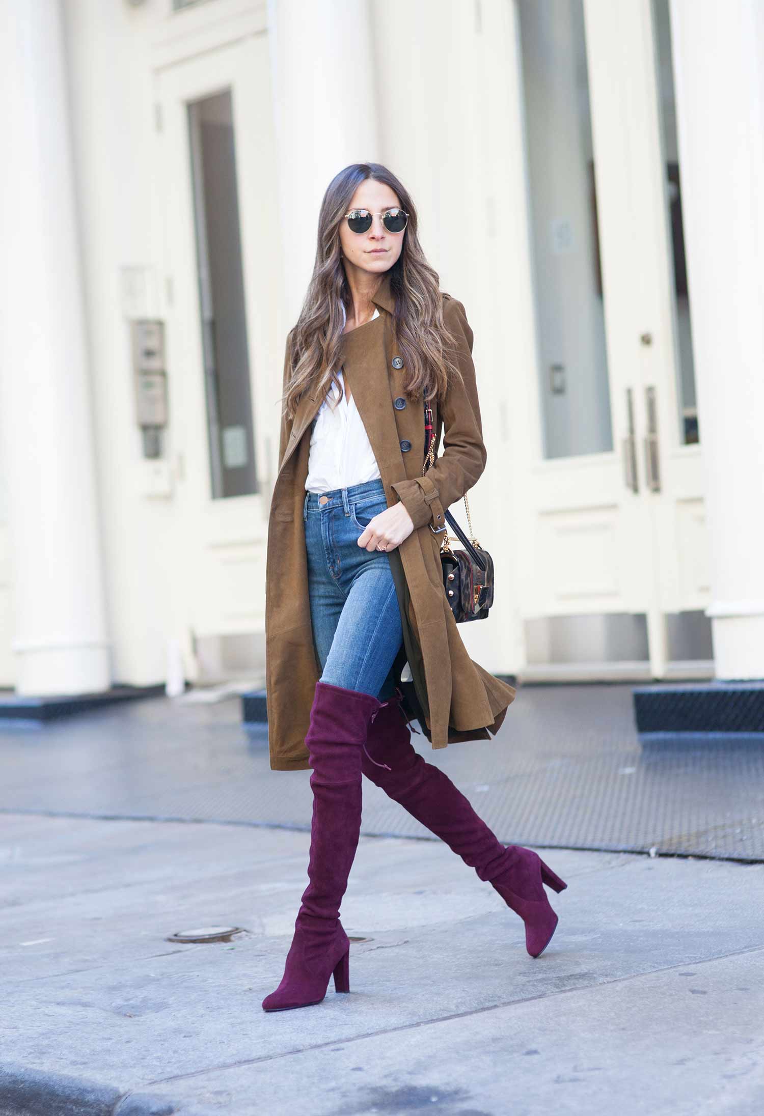 С чем и как носить бежевые и светло-бежевые замшевые сапоги