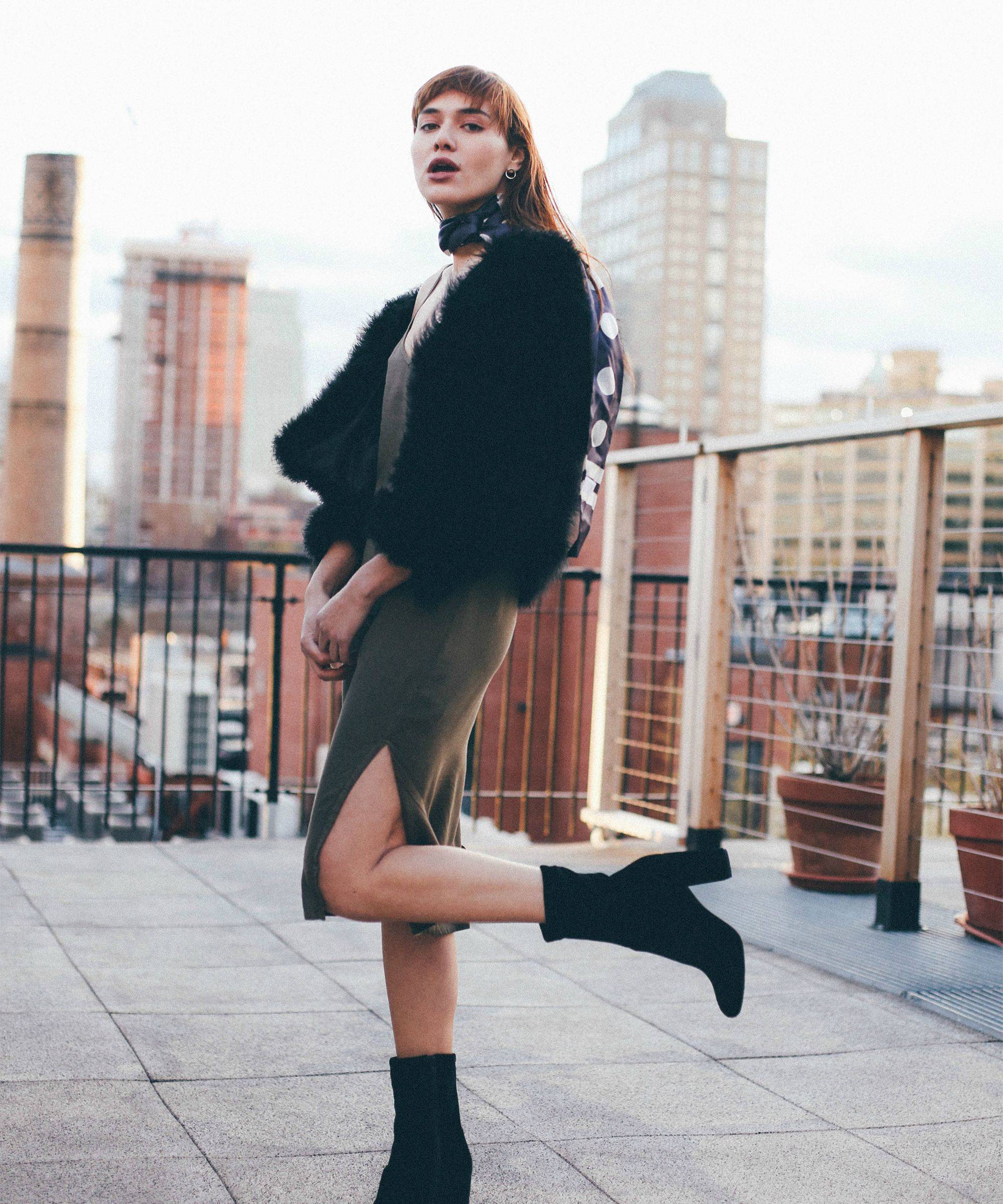 Узнаем с чем носить черные замшевые сапоги на каблуке