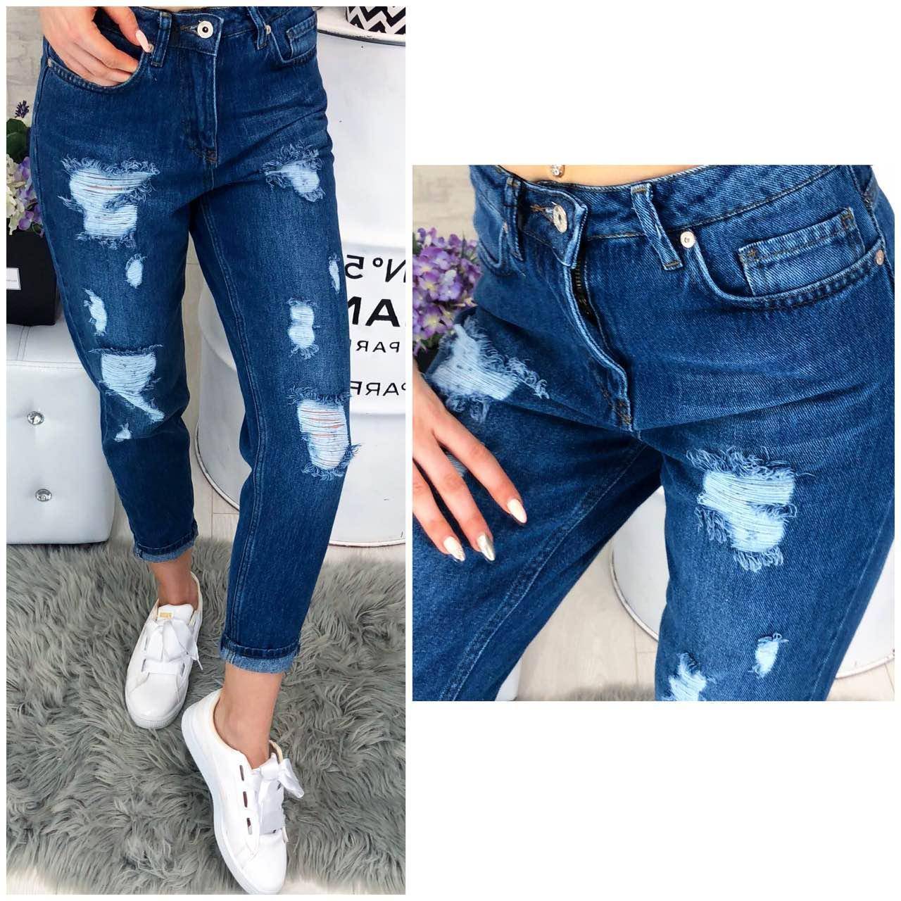 Рваные джинсы, зауженные книзу, подойдут стройным девушкам. Темно-синие и светлые джинсовые штаны украшают горизонтальными вырезами по всей длине штанин. В некоторых моделях дырки делают вертикальными.