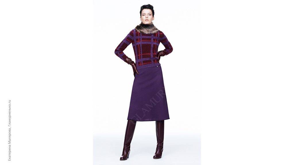 Яркий красно-фиолетовый – чисто зимний вариант, а красно-сиреневый – весенний или летний. Некоторые оттенки красно-фиолетового добавляются также в осеннюю палитру. Один и тот же оттенок красно-фиолетового в сочетании с цветами рыже-коричневой гаммы может использоваться в осенних комплектах, а с синими оттенками – в зимних. Причем это может быть один и тот же цвет.