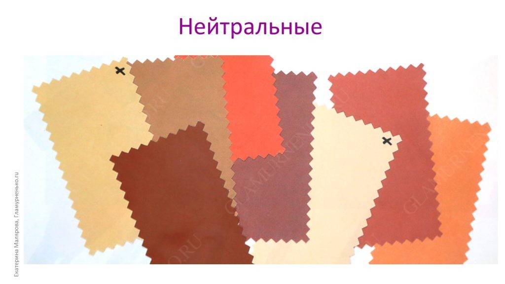 А на этой фотографии – осенние нейтральные цвета. Крестиками отмечены те из них, которые смело может позволить себе у лица весна.