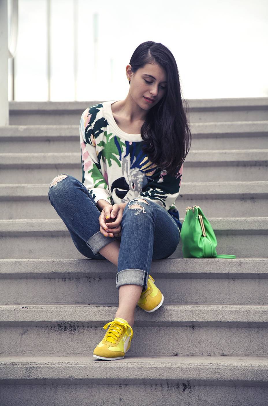 Желтые кеды не всегда нуждаются в подкреплении желтыми аксессуарами