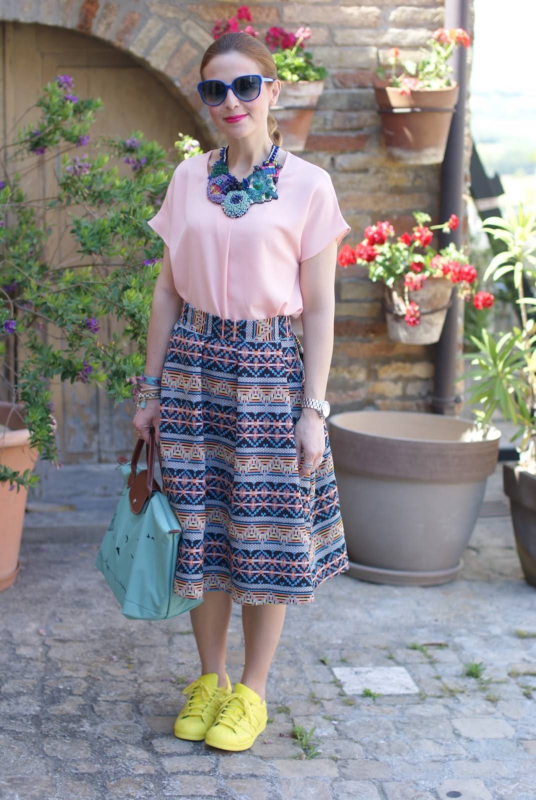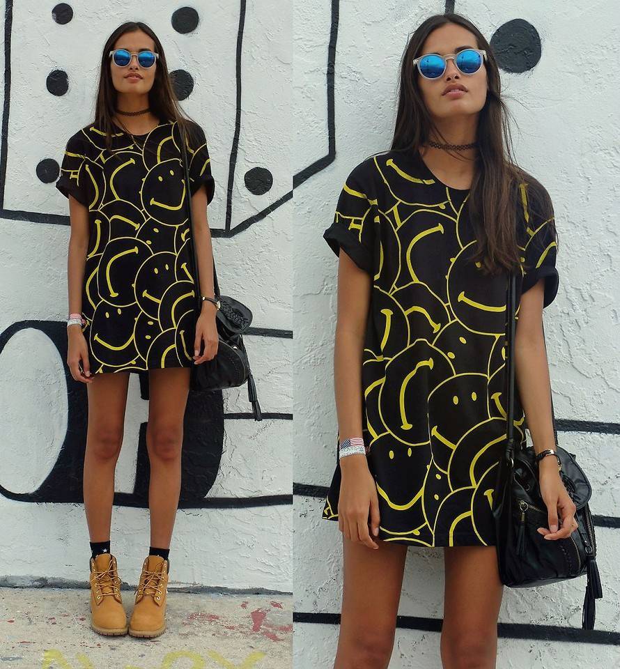 Выбирают яркие и творческие девушки. Такой вариант подойдет лучше всего для прогулок или свидания, но абсолютно не подходит для офиса. Смотрится очень смело и весело.