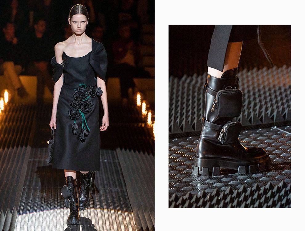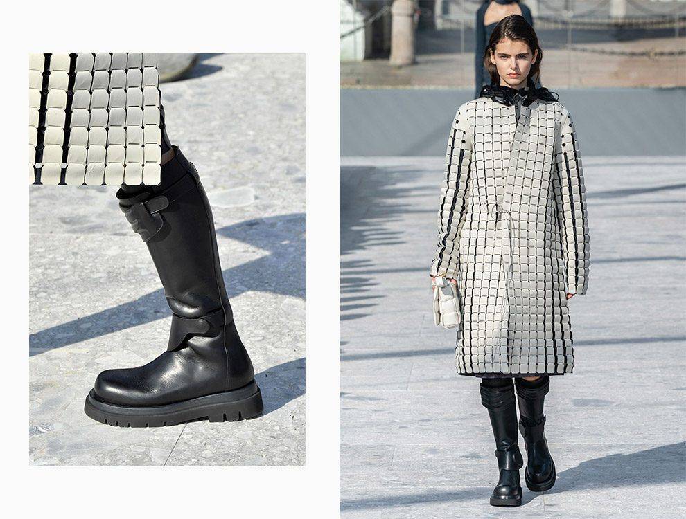 Несомненно, хитом сезона весна-осень 2022 станут грубые сапоги, которые обязательно должна дополнять шнуровка. Дизайнеры рекомендуют сочетать такую обувь с весьма неожиданными женственными образами, к примеру с легким платьем расклешенным снизу. Тем модницам, кто все-таки хочет примерять на себя что-то яркое, броское и неординарное, хорошо подойдет сочетание ткани с разными фактурами. Довольно актуальными и востребованными будут сапоги на каблуке, и желательно, чтобы каблук был необычной или квадратной формы.